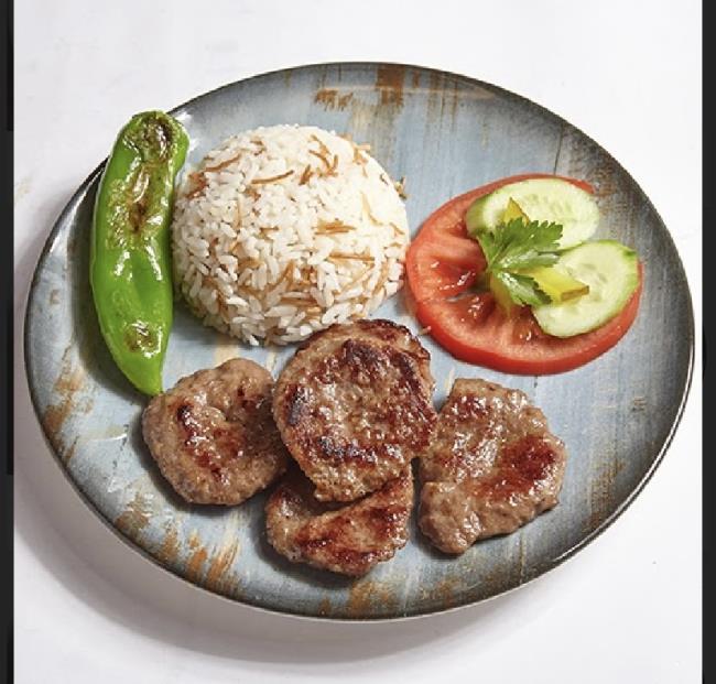 Pilav veya Patates Kızartması, Domates ve Turşu eşliğinde