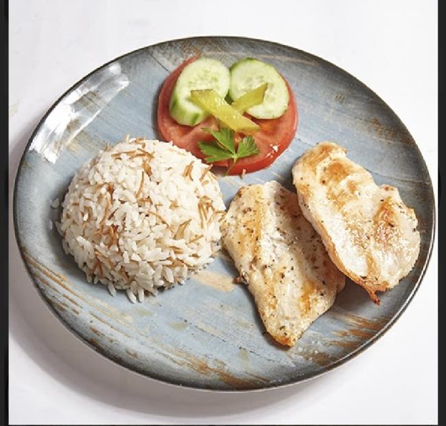 Tereyağlı Pirinç Pilavı, Domates, Turşu ve Köz biber eşliğinde